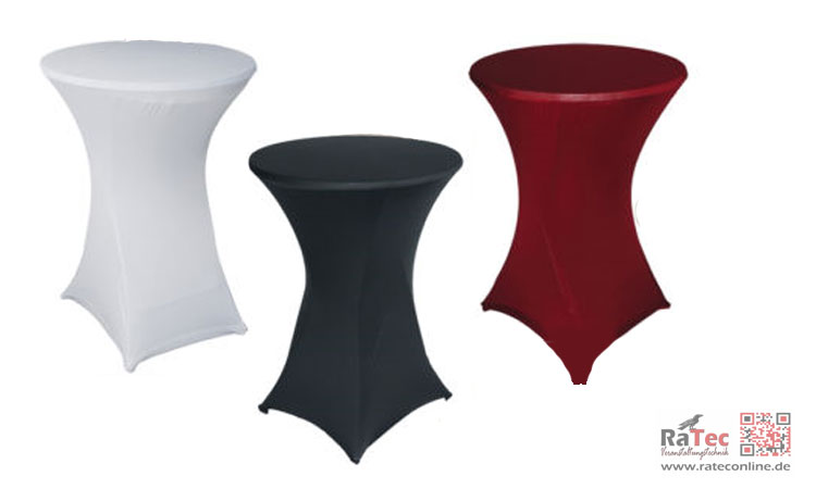 Bei uns mieten Sie Stehtische inkl. Hussen im XXL-Format für den Indoor und Outdoorbereich. Die Stehtische haben eine Höhe von 115cm und eine Tischplattengröße von 80cm. Unsere Hussen gibt es in drei Farben: Weiß, Schwarz und Bordeaux. Sonderfarben auch nach Wunsch.